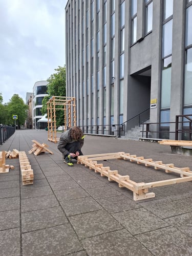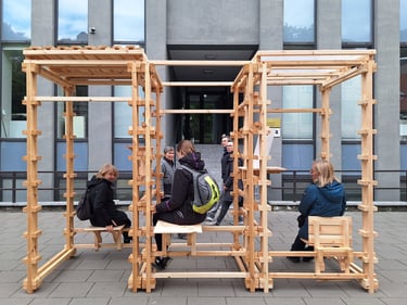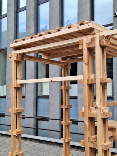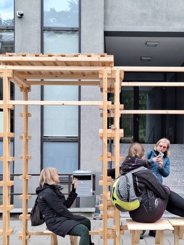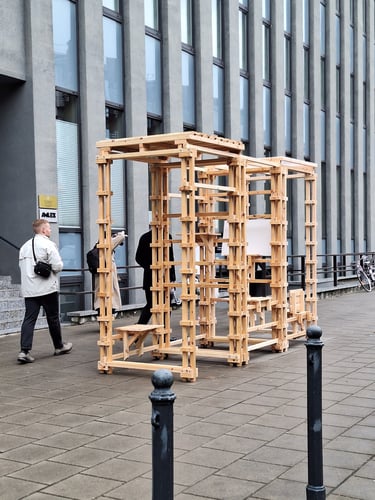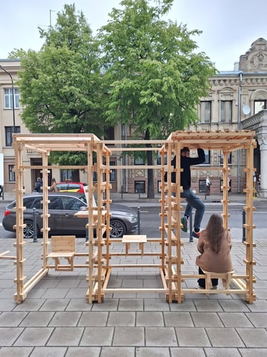 Algirdo projekto tikslas – lengvai pagaminamas, laisvai pastatomas (be pamatų ir žemės darbų), surenkamas ir perrenkamas objektas, kurį galėtų savo reikmėms susikonstruoti bet kas naudojantis lengvai prieinamomis medžiagomis bei įrankiais. Tokiomis minimaliomis priemonėmis kuriamas modulinis objektas kuriuo galima formuoti skirtingo dydžio ir paskirties struktūrų kombinacijas. Taip šios stotelės gali būti naudojamos įvairaus amžiaus žmonių skitingoms veikloms – nuo bendruomenės susirinkimų iki žaidimų erdvės, nuo pavienių suoliukų iki vakarienės stalo, nuo vertikalaus sodo iki tiesiog stotelės.